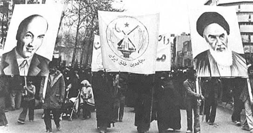 පශ්චාත් විප්ලව පෙලපාලිවලදී ෂරියාටිගේ හා අයතොල්ලා කොමෙයිනිගේ රුව සහිත පුවරු අත දරා සිටින ඉරාන මහජන මුජහෙදිනයේ ආධාරකරුවෝ. මුජහෙදිනය ෂරියාටිගේ ලේඛනවලට ප‍්‍රසිද්ධිය දෙමින් ඒවා බෙදා හැරියේය